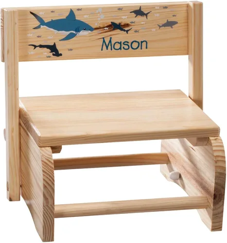 Pregunta sugerida sobre Fox Valley Traders Taburete y silla infantil 2 en 1 personalizados, personalizado con nombre del niño, diseño de tiburones ¿Este producto sí me sirve para lo que necesito?