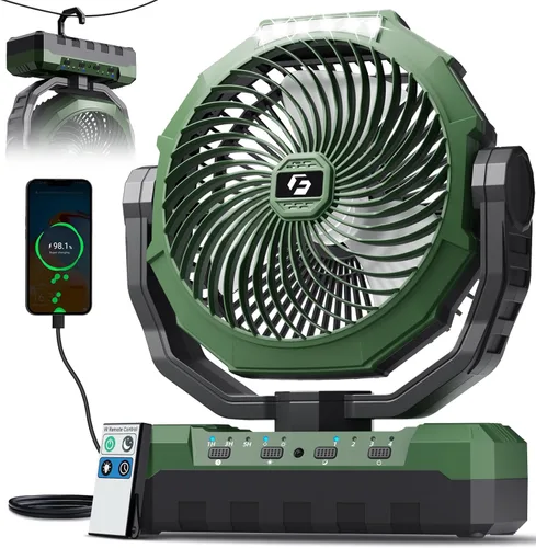 【Batería de súper gran capacidad】 Ventilador portátil recargable FRICOL con tecnología de celda avanzada única. Está equipado con baterías recargables de gran capacidad para una resistencia súper larga de 10-60 horas. También puede usarlo como un banco de energía para su teléfono, tableta o computadora portátil en caso de emergencia. 【4 velocidades potentes y energéticamente eficiente】Este ventilador de camping cuenta con un motor premium y una aspa de ventilador ultradelgada para mejorar la potencia del viento mientras se minimiza el ruido (<30 dB). Tiene una velocidad más rápida (3950 r/min) y un viento más fuerte (4.6 m/s), lo que te proporciona un flujo de aire súper y mantiene la circulación de aire en la tienda, y no molestará tu sueño ni hará nada. 【Ajustabilidad / Versatilidad y Comodidad Personalizada】3 temporizadores te dan la opción de apagar el ventilador de batería durante un descanso; 2 niveles de luz LED cuidan de tus ojos en la oscuridad; Control remoto fácil cuando tienes distancia al ventilador; Cabezal de ventilador ajustable verticalmente para elegir la brisa fresca óptima que deseas. Súper duradero y estable: el ventilador para exteriores está hecho de material ABS con diseño resistente y anticaídas, puedes llevarlo a cualquier lugar que quieras ir en tus aventuras. El ventilador también está equipado con almohadillas antideslizantes en la parte inferior, lo que lo hace más estable en el escritorio. Abraza la comodidad al aire libre: mantente fresco y sereno mientras conservas energía. Ya sea para hacer senderismo, pescar, hacer picnics, ir a la playa o a eventos deportivos calurosos, nuestro ventilador multifuncional para exteriores es el accesorio esencial para acampar perfecto para una experiencia refrescante y cómoda en la naturaleza. 【Edición Especial Exclusiva de Amazon】Más Valor, Menos Molestia: Tu compra de la Edición Especial de Amazon viene mejorada con una garantía de 1 año inscrita automáticamente y protegida por nuestro dedicado soporte de satisfacción del cliente de 7x24 horas, asegurando asistencia rápida y una experiencia confiable después de la compra en cualquier momento.