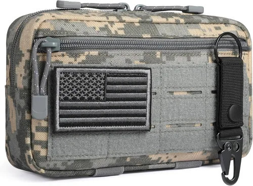 Panel de gancho y lazo de corte láser Molle/PALS: La cubierta frontal del estuche táctico de administración está cubierta con un panel de gancho y lazo de corte láser Molle/PALS de 9" por 3" Fácil de colocar suministros adicionales o equipos Molle según sea necesario para ampliar la capacidad de carga. El parche gratuito de la bandera de EE. UU. y el llavero táctico hacen que el estuche de utilidad sea más visible y práctico. Tamaño del estuche administrativo: 8.7" x 5.3" x 2.2" (22.1cm*13.5cm*5.6cm). Calidad resistente: la bolsa táctica está hecha de nailon 1000D, duradero y resistente al agua, ofreciendo durabilidad a largo plazo y manteniendo tu equipo seguro y seco. Cremalleras dobles resistentes para la parte superior a los lados que permiten que se abra completamente y quede plana. Ve fácilmente lo que tienes. ALMACENAMIENTO CON PARTICIÓN: La funda Molle viene con un bolsillo frontal con cremallera y un compartimento principal. Hay dos bolsillos de malla y múltiples bandas elásticas dentro del compartimento principal que pueden contener llaves, linternas, cuchillo, pequeño bloc de notas, bastones luminosos, bolígrafos tácticos, suministros de primeros auxilios, mapa, brújula, multiherramienta u otros artículos de uso común para un fácil acceso. La parte inferior de la bolsa militar cuenta con dos bucles elásticos para asegurar el torniquete o la cuerda de paracaídas. SISTEMA MOLLE: Las tres correas verticales y los broches de metal en la parte posterior te permiten añadir la funda modular a una mochila táctica, chaleco de combate, cinturón u otros engranajes MOLLE como una funda exterior adicional, o llevarla como una funda normal para asegurar artículos esenciales. Multiusos: la bolsa de herramientas Molle es ligera y portátil, y puedes llevarla contigo a cualquier lugar, en tu bicicleta, en tu coche o añadirla al chaleco de tu perro de servicio. Se puede utilizar como bolsa de chaleco, bolsa de paquete, bolsa táctica para cinturón de cintura, bolsa de descarga, bolsa IFAK, bolsa de caída subabdominal, bolsa de herramientas, etc. según sus necesidades.