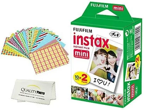 Películas Fujifilm Mini para cámaras instantáneas Mini 8, 9 y 11 CALIDAD ISO 800 de alta velocidad: con excelente calidad de grano, la película Mini garantiza colores vibrantes y tonos naturales de piel. Compatible con la cámara instantánea Fujifilm Mini 9 y la línea completa de las cámaras Fujifilm Mini 8, Mini 90, Mini 70, Mini 50S, Mini 25, Mini Hello Kitty y las cámaras de película instantánea Polaroid PIC 300 DESARROLLA AL INSTANTE Captura tus momentos y disfruta de la imagen de inmediato. Todo lo que tienes que hacer es, presionar el obturador, capturar el momento y ver cómo la foto se desliza hacia afuera y la imagen se desarrolla frente a tus ojos! ES TU MOMENTO Esta película es del tamaño de una tarjeta de crédito - 5.4 x 8.6 cm (tamaño de película) - La película única de tamaño de tarjeta de crédito es fácil de llevar en tu bolso o cartera y tiene ese marco blanco clásico que puedes dejar en blanco o personalizar con mensajes divertidos. Adhesivos de borde, 20 unidades. Los adhesivos pueden dar un toque especial a tus fotos. ¡Simplemente retira la calcomanía y colócala en la imagen! ¡No solo ahorras dinero, sino que también puedes hacer que tu foto sea más única! ¡Comienza la diversión hoy! INCLUYE Paño de microfibra de calidad para fotos. Hecho de fibra de alta calidad, gruesa y ultra suave, extremadamente fina, que te dará una limpieza segura, rápida y fácil para tu lente de cámara mini y/o cualquier pantalla LCD o cualquiera de tus dispositivos.