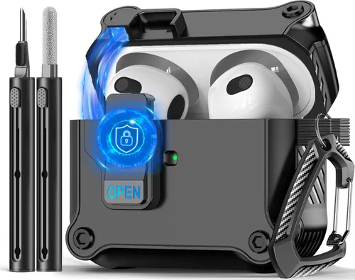 Dispositivo compatible: instalación simple y se adapta a los Airpods de 3ª generación, al mismo tiempo se adapta a Apple la funda de carga original AirPods de 3ª generación); (no compatible con Airpods Pro 2, Airpods 2). Diseño de bloqueo seguro: mantiene el bloqueo seguro oculto mejorado, solo necesitas presionar el botón "ABRIR", funda segura con interruptor a presión automático, fácil de operar, diseño más seguro y práctico. Puedes abrirlo con una mano, puede ayudarte a evitar una apertura accidental al llevar o caer. Protección de cuerpo completo de 360°: está hecha de material TPU + policarbonato, funda de TPU suave resistente y rayas antideslizantes diseñadas proporcionan, al mismo tiempo, también está equipado con un diseño de bolsa de aire hueco de cuatro esquinas que proporciona una excelente absorción de impactos y resistencia a los impactos, protegiendo tus auriculares Airpod QuietComfort II del polvo, golpes, caídas y rayones. Práctica portabilidad: diseño portátil y elegante con un mosquetón y correas de muñeca para un fácil transporte. Se puede fijar rápida y fácilmente a una bolsa, mochila o llavero, y gracias al material de alta calidad, la funda es ligera para llevar sin carga y también se puede utilizar como decoración. Expresa tu estilo único con nuestra colección de colores personales que combina con tu estado de ánimo y atuendo para recibir cumplidos dondequiera que vayas. El paquete contiene: 1 funda de repuesto para Airpod de 3ª generación, 1 llavero, 1 bolígrafo de limpieza.