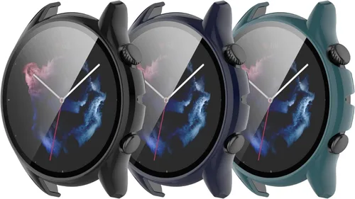 Protector de pantalla ECSEM compatible con Amazfit GTR 3/GTR 3 Pro accesorios de reloj inteligente. (Solo funda protectora, no incluye el reloj) La funda protectora para Amazfit GTR 3/GTR 3 Pro está hecha de material de policarbonato duro de alta calidad, es resistente al agua y resistente. La carcasa protectora para Amazfit GTR 3/GTR 3 Pro está chapada con una película protectora de pantalla de vidrio templado, que protege la pantalla del reloj y los lados de arañazos y daños a 360°. El diseño de corte preciso te da un fácil acceso a todos los botones y puertos funcionales, y un cómodo acceso a todos los controles, botones, sensores y funciones Amazfit GTR 3/GTR 3 Pro. El diseño ligero te permite instalarlo rápida y fácilmente sin quitar la correa, simplemente alinea la incisión. Diseño ultra fino y ligero que no añade ningún volumen, y no perderás ninguna sensibilidad táctil. Utiliza un paño seco para limpiar si el agua, el sudor y la humedad entran debajo de la funda, ya que esto puede afectar la capacidad de respuesta táctil