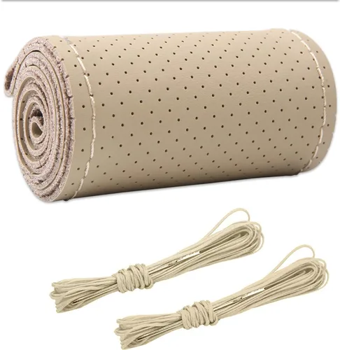 Wevdn Funda de Volante de Cuero Genuino, Envolvente de Coser, Protector de Volante de Costura DIY, Protector de Volante de 15 Pulgadas Transpirable