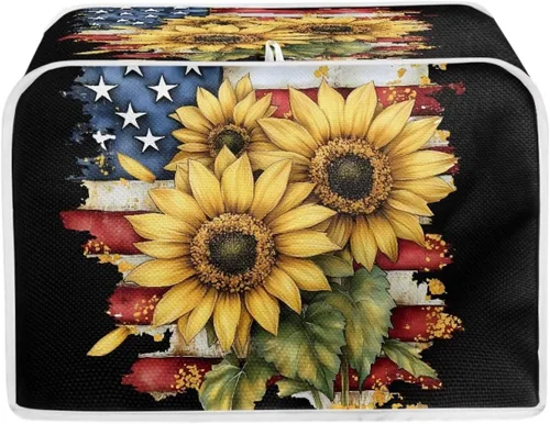 Funda para tostadora de girasol con bandera estadounidense para 2 rebanadas de pan, horno, cocina, cubierta para electrodomésticos, protección