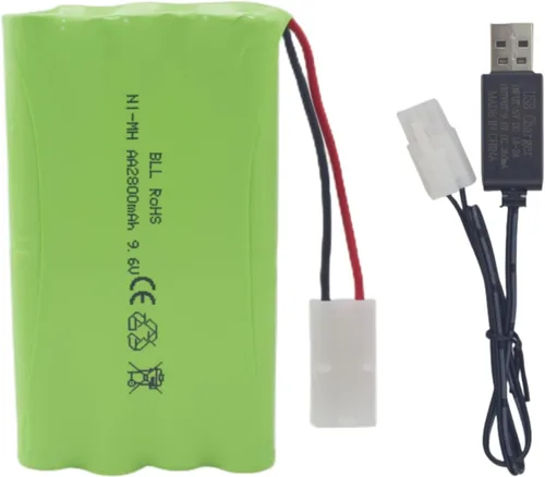 Modelo a juego: esta batería es 9.6V 2800mAh con Tamiya plug AA NiMH batería recargable para todo tipo de juguetes, excavadoras, automóviles, camiones, tanques, vehículos de construcción, barcos de control remoto, batería recargable de coche de juguete RC Larga duración de la batería: Batería de coche de control remoto con capacidad de 2800mAh y larga vida útil para proporcionar energía continua para su automóvil. Ligero y duradero: el peso de la batería es de solo 6.35 oz/1 unidad, el tamaño de la batería es de 3.94 pulgadas de largo x 2.28 pulgadas de ancho x 0.59 pulgadas de grosor, muy ligero y fácil de llevar. Nota: comprueba el enchufe y el tamaño de tu batería de juguete RC antes de realizar un pedido de baterías. Estado de carga: cuando el cable de carga USB está encendido, la luz roja está encendida durante mucho tiempo. (La luz roja LED parpadea lentamente, cargando) - (La luz roja LED se apaga, completamente cargada) Deja de cargar automáticamente cuando la batería está completamente cargada El paquete incluye: 1 pilas recargables AA de 9.6 V 2800 mAh con enchufe Tamiya con 1 cable de carga USB