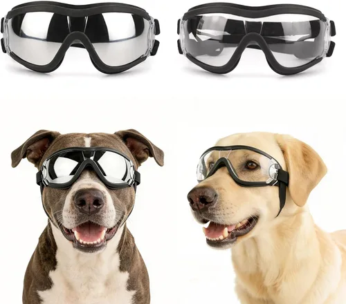 Gafas de sol transparentes para perros NAMSAN y gafas de sol negras para perros de raza mediana a grande, 2 piezas, protección ocular para perros al