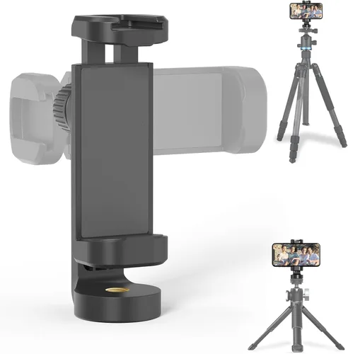 Gahenwo Soporte de teléfono para trípode, adaptador universal de montaje de trípode con zapata fría, gira 360° y soporte de abrazadera ajustable