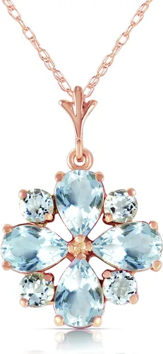 Galaxy Gold GG Collar de oro rosa macizo de 2.43 quilates de 14 quilates con colgante de aguamarina natural