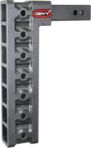 Resistente: fabricado con acero resistente, chorro de arena y acabado con una capa de polvo de vena plateada duradera para una fácil limpieza y servicio duradero. Remolque de forma segura cargas pesadas de hasta 10,000 libras con un peso máximo de lengua de 1,500 libras. Versatilidad: El diseño de tubo apilado ofrece opciones para múltiples accesorios y accesorios al mismo tiempo, como un soporte de bola estándar, paso de enganche, estante de carga, portabicicletas, portabicicletas y más. AJUSTABLE: Suelta tu enganche hasta 15 pulgadas con 7 posiciones ajustables. Ajuste de un pasador sin estrés con agujeros de pasador antidesgaste. Funciona con receptores de 2 pulgadas. PROBADO: Todos los productos GEN-Y se fabrican aquí en los Estados Unidos y superan los requisitos de prueba de peso SAE-J684. La capacidad de remolque está limitada por los componentes nominales más bajos. Un kit estabilizador recomendado para caídas de más de 12.5 pulgadas. Garantía de por vida: los enganches GEN-Y están respaldados por una garantía limitada de por vida para que pueda estar seguro de que está obteniendo un producto de calidad. No se recomienda su uso con accesorios de remolque que no sean GEN-Y. Verifique el receptor del camión y el tamaño de la gota antes de realizar el pedido