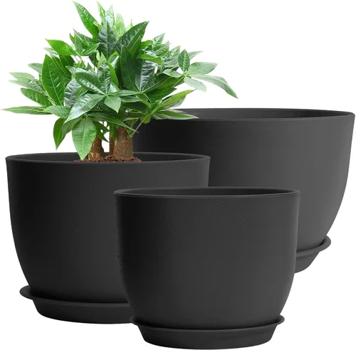 Diseño moderno y sencillo: maceta negra pura y exterior de acabado mate, que aporta un estilo minimalista moderno. Las macetas redondas son perfectas para todas las plantas de interior de tamaño mediano a grande y jardines de especias de hierbas. [Combinación de 3 tamaños y ampliamente utilizados] Estas macetas de plástico para interiores se combinan con 3 tamaños diferentes. Estas macetas son buenas para trasplantar plantas grandes y flores de entre 7 y 11 pulgadas. Son perfectas para cultivar la mayoría de plantas y flores de interior grandes, como ave del paraíso, serpiente laurentii, palmera majestad, monstera deliciosa, suculentas, hierbas, romero, albahaca, limones, tomillo y menta, aloe vera, planta de higuera de hoja de violín, plantas de serpiente, violetas africanas, paz e-lily Y así en. 【Excelentes agujeros de drenaje】La maceta para plantas viene con múltiples agujeros de drenaje en la parte inferior. Los agujeros proporcionan un sistema de circulación de aire para las raíces de las plantas, lo que reduce en gran medida el problema de la pudrición de la raíz de las plantas en un ambiente cerrado. Material ecológico: hechas de plástico reciclable duradero, macetas de plástico sólido que protegen las plantas y el suelo. Las macetas de polipropileno de alta calidad se sienten resistentes en la mano pero no demasiado pesadas. Las paredes laterales gruesas de 0.157 in de tamaño mantienen todo en su lugar. Regalo perfecto: ¿Estás buscando regalos especiales? Este es un regalo que se sorprenderá en cualquier ocasión, ya sea el día de la madre, cumpleaños, inauguración de la casa, aniversario, Navidad o cualquier otro buen día