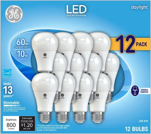 GE Bombillas LED A19 de uso general equivalente a 60 W (12 unidades)