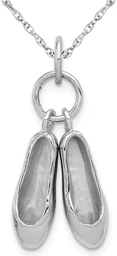 Perfecto para el pequeño amante de la bailarina en tu vida, este colgante de zapatillas de ballet está fabricado en oro blanco de 14 quilates y se completa con una cadena de oro a juego. ¡Una manera perfecta de sorprender a una joven especial en cualquier ocasión!