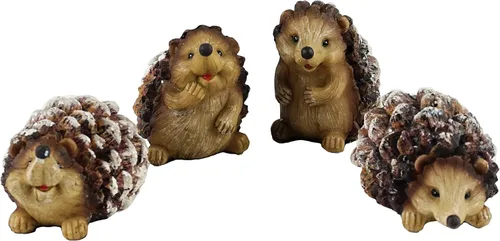 Juego de 4 figuras de erizo Medidas aproximadas: 2-3"H x 1.90-3.15"W Hecho de resina Cuenta con un conjunto de erizos del bosque con dorsos de piña y un acabado brillante Seguro que añadirá un toque divertido y llamativo a tu decoración temática de bosque