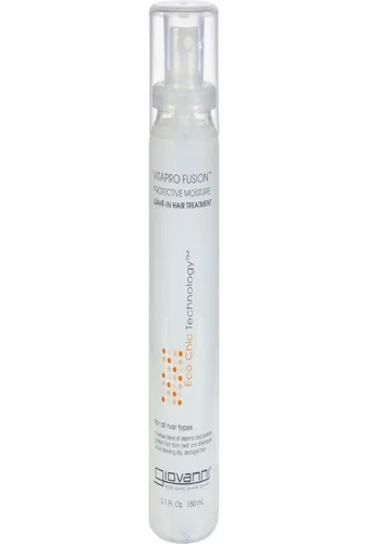 - GIOVANNI- Tratamiento capilar sin enjuague Eco Chic VitaPro Fusion - Humedad protectora para todo tipo de cabello (5.1 onzas) - RECONSTRUCCIÓN Y REPARACIÓN- Penetra el cabello dañado e infunde cada hebra con productos botánicos orgánicos enriquecidos con proteínas - Fusiona vitaminas con proteínas esenciales para hacer que el cabello dañado sea sedoso y manejable - Protege el cabello del calor, productos químicos y evita daños - Vegano, sin crueldad animal y fabricado en los Estados Unidos.