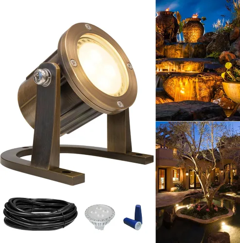 GKOLED Luz subacuática de latón macizo, luces LED de estanque de bajo voltaje, iluminación de fuente sumergible con bombilla MR16 de 5 W, 2700 K,