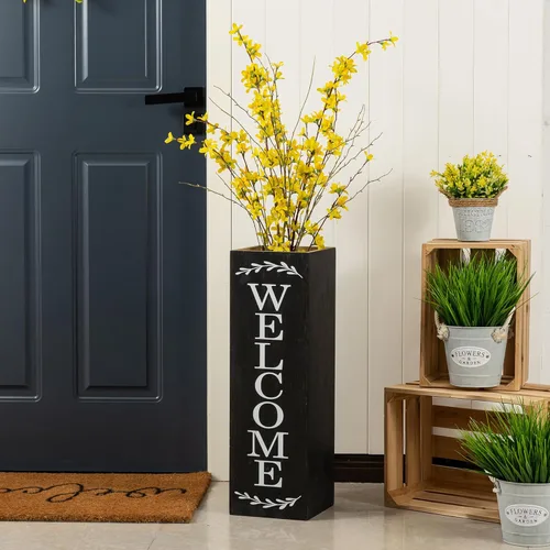 Tamaño perfecto: este letrero de bienvenida mide aproximadamente 7.5 pulgadas de largo x 7.5 pulgadas de ancho x 24 pulgadas de alto y está diseñado a medida para ti. Puedes colocarlo en cualquier lugar destacado de tu hogar, como tu patio o entrada, como una elegante pieza decorativa para dar la bienvenida a familiares o amigos. Materiales premium: nuestros productos están hechos de madera maciza de alta calidad, lo que garantiza seguridad y durabilidad. Los diseños están pintados a mano y serigrafiados, el color es resistente y resistente a la decoloración. Nota: Solo para flores secas. No agregue agua. Exquisita artesanía: con un diseño de doble cara, un lado está impreso con la palabra "WELCOME" con elegantes acentos frondosos en un lado y "Bienvenido a nuestro PORCH" con un bonito diseño de corona en el otro. Será el compañero perfecto para tu decoración al aire libre. Fácil de usar: el diseño único y creativo de la caja permite una colocación flexible; también puedes insertar tus flores favoritas para decorar tu porche. Es el acento perfecto para cualquier espacio vital. Regalo único: este letrero, con su elegante acabado de laca negra, puede decorar su hogar y dar la bienvenida a los invitados, agregando un ambiente cálido y acogedor a su porche, jardín, casa o cualquier espacio vital. Es el regalo perfecto para un amigo