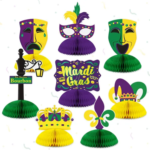 ¿Para qué sirve 8 piezas de Mardi Gras - Centro de mesa de panal de abejas para decoración de fiesta de Mardi Gras, decoración del hogar?
