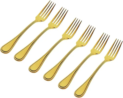 Godinger Juego de 6 tenedores de vajilla de acero inoxidable 18/0 con cuentas doradas