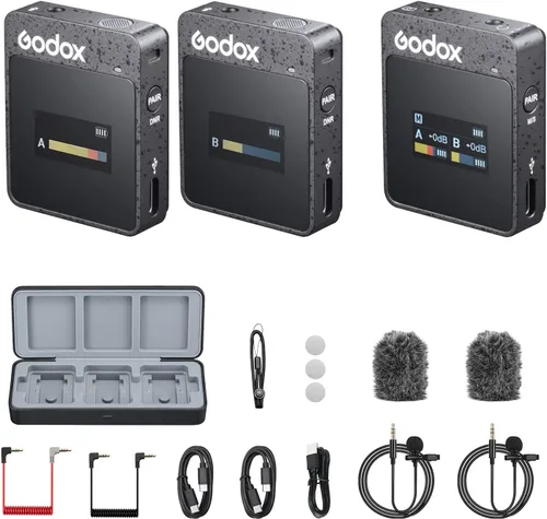 Godox MoveLink II M2 Wireless Lavalier Microphone System(2 TX + 1 RX + Charging Case), 2.4G Wireless Noise Cancelling Mic, 100m(328ft) Range for