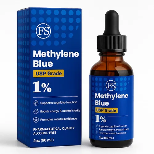 Azul de metileno 1% – Grado USP – 60mL / 2.oz cuentagotas de vidrio ✔️ Calidad verificada en laboratorio: nuestro azul de metileno es de grado USP, sin alcohol y sin formaldehído. Cada lote es probado en laboratorio de terceros para garantizar la máxima pureza y estabilidad. Claridad y enfoque mentales: confiada por miles en la comunidad de biohacking, esta solución de grado de laboratorio soporta la función cognitiva, el rendimiento de la memoria y la energía mental. Micro-dosis de precisión: cada gota proporciona aproximadamente 0,5 mg de azul de metileno, ideal para rutinas nootrópicas o protocolos de investigación. Usar con agua según sea necesario, bajo orientación. Más por menos: nuestra botella de 2.0 fl oz ofrece más volumen que los competidores típicos de 1.7 fl oz, a un precio más bajo por mL. Se suministra en vidrio ámbar protector de luz con cuentagotas de pipeta. ⚠️ Notas de uso: para investigación y uso en laboratorio. Agitar bien. Comience con 1-2 gotas en agua. No exceda la dosis recomendada. No evaluado por la FDA. Consulte a un médico si es necesario. Elija azul de metileno de calidad premium en el que confían miles de personas, sin el precio premium. Haz tu pedido ahora y actualiza tu pila cognitiva con confianza.