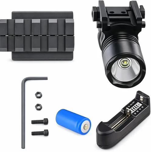 Polímero de alta resistencia, reequipa tu pistola heredada con un riel Picatinny de 4 ranuras debajo del bastidor Construcción de metal resistente, interruptores deslizantes para un control independiente de la linterna Tres (3) modos de linterna: alta, baja y estroboscópica, ajustes completos de viento y elevación, diseño táctico de perfil bajo Incluye: El paquete incluye linterna, adaptador, batería recargable, cargador.