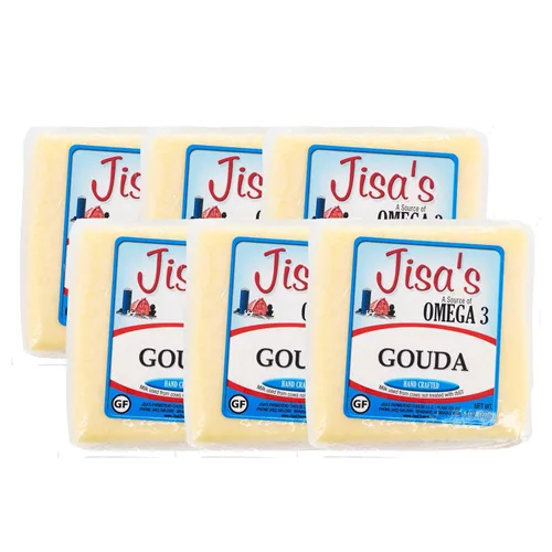 Gouda Paquete de 6 8 onzas cada uno Queso artesanal Hecho con leche entera Fabricado en lotes pequeños Producto de Nebraska Queso