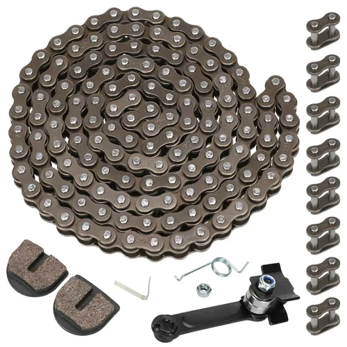 Compatible con Razo* MX500 MX650 SX350 SX500 SX650 Dirt Rocket Dirt Quad motocross eléctrico XRF50 mini motocicleta. Material de calidad: la cadena está hecha de material de metal de alta calidad, antideformación por compresión y antienvejecimiento, no es fácil de romper, fuerte y duradero, se puede utilizar durante mucho tiempo. Las pastillas de freno están hechas de material resistente al desgaste de partículas grandes, resistencia a altas temperaturas, buena resistencia a la descomposición del calor, descomposición del agua, fuerte y duradero, se puede utilizar más potencia de frenado durante mucho tiempo. Fácil de instalar: es fácil de instalar y operar, puedes ajustar la longitud de la cadena, de acuerdo con la condición de la bicicleta eléctrica de cohete sucio. El uso a largo plazo sin inspección y ajuste hará que la cadena se afloje, por lo que debes revisar y reemplazar tu cadena regularmente para garantizar la seguridad de conducción. El paquete incluye: 1 cadena #25 132 eslabones, 8 eslabones maestros, 1 tensor de cadena, 2 pastillas de freno redondeadas. Nota: comprueba lo más posible la imagen, el modelo y el tamaño del artículo cuidadosamente antes de comprar. O déjanos mensajes para obtener ayuda.