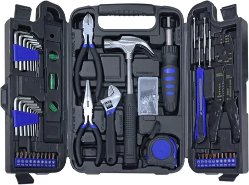 Material y durabilidad de alta calidad: construidas con acero para herramientas S2 de alta calidad y CRV, estas herramientas ofrecen una dureza, resistencia y resistencia a la corrosión superiores para un rendimiento duradero en diversas tareas domésticas. Juego completo de 129 piezas: equipado para numerosas necesidades básicas de bricolaje y decoración del hogar. El kit incluye herramientas esenciales como destornilladores, brocas, una llave ajustable, alicates (diagonal, punta larga), llaves hexagonales, un martillo de garra, una cinta métrica, un nivel de 9 pulgadas, herramientas de engaste, un cuchillo utilitario y sujetadores. Uso ergonómico y cómodo: cuenta con herramientas manuales de diseño ergonómico que proporcionan un agarre seguro y cómodo, reduciendo la fatiga de la mano. Esto hace que el juego sea adecuado para profesionales, aficionados y entusiastas del bricolaje por igual. Almacenamiento y portabilidad organizados: las 129 herramientas están perfectamente organizadas en una caja de plástico resistente y moldeada por soplado. Esto garantiza que tus herramientas se almacenen de forma segura, fáciles de localizar y fáciles de transportar o almacenar.