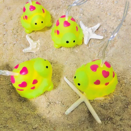 Guirnalda de luces nocturnas de tortuga de 5.4 ft, funciona con pilas, 10 luces LED para niños, dormitorio, hogar, fiesta, cumpleaños, decoración
