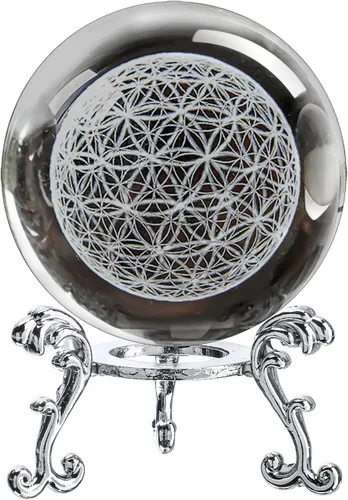 H&D HYALINE & DORA Bola de Cristal Pisapapeles de Flor de la Vida Grabada con Láser 3D con Soporte, Globo de Flores de Rejilla Curativa de Chakras