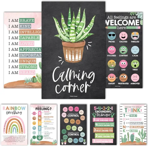 Hadley Designs 8 Pósters de Rincón Calmante para Elementos Esenciales del Aula para Maestros - Suministros para Rincón de Calma de 11x17, Tabla de