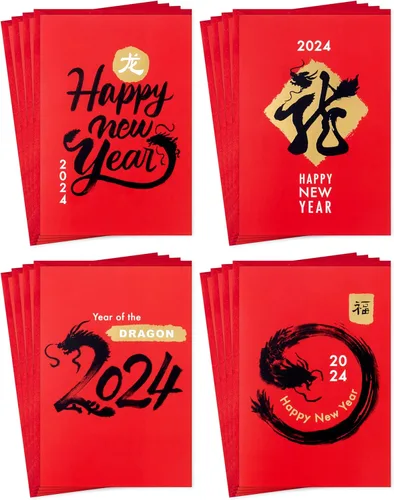 Envíe a amigos o familiares deseos de alegría y suerte en el nuevo año que se avecina con un paquete de tarjetas festivas de Año Nuevo Chino. El paquete de tarjetas rojas de Año Nuevo Lunar cuenta con 16 tarjetas en 4 diseños acentuados en negro y dorado (4 de cada diseño). Cada diseño cuenta con deseos únicos de celebración en el interior y una nota sobre el Año del Dragón. Las tarjetas de Año Nuevo chino miden aproximadamente 5 x 7.2 pulgadas y vienen con sobres a juego. Hallmark Las ocho tarjetas de felicitación de bambú hacen que sea fácil celebrar las tradiciones y vacaciones chinas y conectarse con familiares y amigos mientras honra un patrimonio compartido.