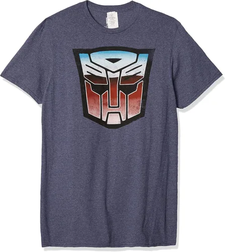 Transformers Men's Stressed Transformer Short Sleeve T-Shirt, Navy Heather, Large. Featuring a silkscreen design of a Transformer on a soft, high quality tee. Available in men's sizes. Perfect for fans of Transformers!