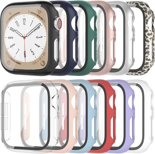 HASDON Paquete de 12 fundas compatibles con Apple Watch de 1.575 pulgadas SE 3 SE 2 Series 6 5 4 SE con protector de pantalla de vidrio templado,