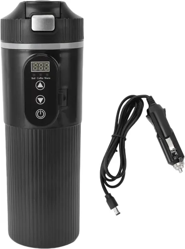 Capacidad de 16.9 fl oz para llevar --- Caliente rápidamente el agua con este calentador de agua caliente para automóvil, adecuado para diversas necesidades de viaje con su diseño universal para diferentes tamaños de vehículo. Pantalla de temperatura en tiempo real: manténgase informado con la pantalla LED que muestra la temperatura precisa del agua, asegurando que no más bocas quemadas. Construcción de acero inoxidable 304: fácil de colocar en el interior garantiza una experiencia de usuario segura, con un filtro integrado para preparar bebidas calientes cómodamente. Práctico control: el hervidor eléctrico para automóvil permite un fácil ajuste de temperatura de 77.0 °F a 212.0 °F, con una función de apagado automático para evitar quemaduras en seco. Diseño de seguridad mejorado: con una construcción de tres capas para reducir los riesgos de quemaduras, este hervidor sella de forma segura para evitar fugas.
