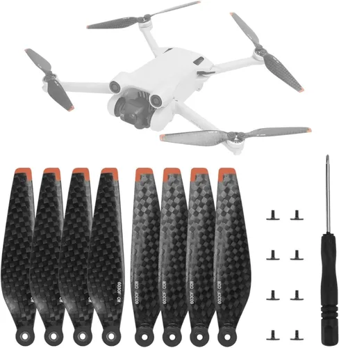 -La hélice de fibra de carbono de bajo ruido 6030F es adecuada para el dron DJI Mini 3 Pro, con menor ruido y mayor duración de la batería. - Material de fibra de carbono, alta dureza y alta resistencia, más duradero que las hélices de plástico, vuelo más estable y ahorra energía de la batería. -Forma pequeña, fácil de transportar, exquisita y ligera para volar fácilmente. Especialmente en vientos fuertes, el equilibrio es bueno. - Instala y retira los accesorios en minutos con el destornillador incluido, incluso la primera vez que lo instales y quites, no te resultará difícil.