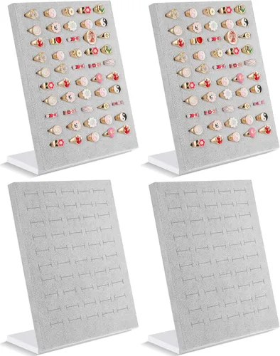 Henoyso 4 piezas de anillo de terciopelo exhibición 50 ranuras en forma de L anillo soporte bandeja soporte para la venta de joyas de pendientes