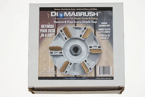 Prepara cubiertas viejas y desgastadas para recubrir Lija la madera para maximizar la adhesión del revestimiento Se adapta a estándar de 5/8 pulgadas. amoladoras angulares Sin productos químicos Funciona mejor con la cubierta antipolvo de metal Diamabrush de 5 pulgadas