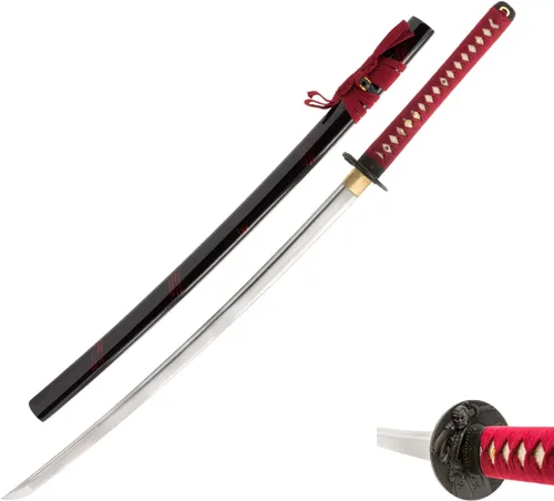 Espada Samurai Wakizashi afilada Espiga completa, acero al carbono 1045, hoja templada térmicamente Oda Nobunaga Tsuba Hoja de aproximadamente 21 pulgadas, mango de 9.5 pulgadas y 32 pulgadas en total Uso para la práctica de corte de artes marciales, colección, decoración