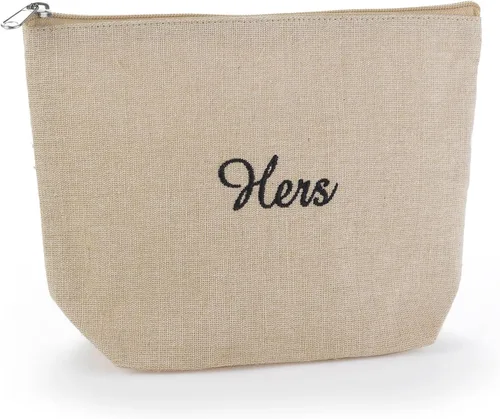 Hortense B. Hewitt Accesorios de boda forrado yute natural bolsa de cosméticos, 10 x 7 pulgadas, suya Hers