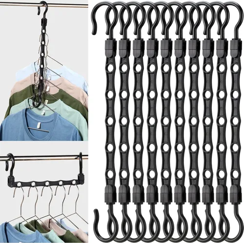 Adecuado para satisfacer tus necesidades: recibirás 40 ganchos organizadores de armario en total, suficientes para satisfacer tus diversas necesidades de uso y organización, cada colgador puede contener más de 5 camisetas, suéteres, vestidos, chaquetas, faldas y abrigos de invierno vertical u horizontalmente, y puede adaptarse bien a la mayoría de tipos de barras de armario Ahorra espacio: cuando cuelgas estos ganchos de ropa verticalmente, hacen un uso más eficiente del espacio del armario, lo que te ayuda a almacenar más ropa, adecuado para armarios pequeños, dormitorios universitarios, tiendas de ropa, apartamentos o casas nuevas con espacio limitado; Consejo: cada agujero mide aproximadamente 0.5 pulgadas de diámetro y puede contener 2 o más perchas si es necesario, dependiendo del tamaño de los ganchos para perchas Organizador fiable: estas perchas de armario que ahorran espacio están hechas de plástico PP de calidad, que es sólido y resistente, fiable para sostener ropa pesada de invierno, con bordes alisados y biselados para proteger tus manos y ropa valiosa, no hay rebabas ni bordes puntiagudos, así que no te preocupes por dañar o arrugar tu ropa Fácil de clasificar: nuestros colgadores de armario pueden ayudarte a ordenar tu ropa por categoría, color, marca, función o temporada, lo que te facilita encontrar lo que quieres y ordenar tu armario, ahorrando tiempo en la organización y encontración, y reduciendo el desorden en tu armario Fácil de instalar: nuestro organizador de perchas se puede instalar en varios pasos simples, por lo que puedes recoger y encontrar la ropa deseada en unos segundos; los ganchos giratorios de 360 grados hacen que sea fácil de almacenar cuando no está en uso, y no ocupa mucho espacio