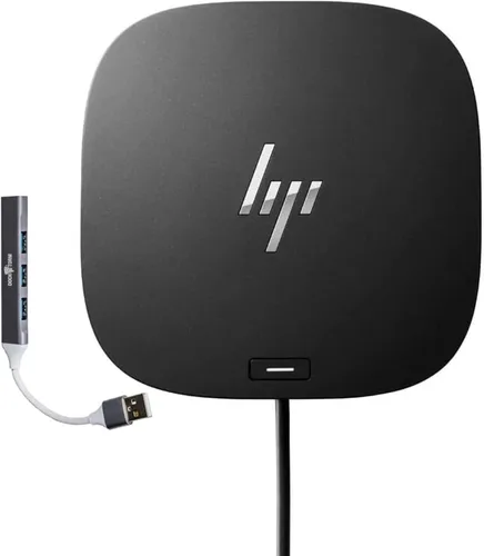 COMPATIBILIDAD SIN RESTRICCIONES – Diseñada pensando en la compatibilidad universal, esta base de conexión funciona tanto con portátiles HP como con portátiles que no sean HP con puertos USB-C y Thunderbolt. ELIMINA EL DESORDEN – Evita un escritorio desordenado ya que el dock reduce los cables adicionales o los cables que se enredan fácilmente. Solución de un solo cable: añade tus accesorios y hasta tres pantallas a la base (3). Luego, simplemente conéctelo a su computadora portátil a través de un solo cable USB-C para acceder a sus dispositivos y cargar su PC. Huella pequeña: recupera tu escritorio con una base compacta que ocupa solo 5 x 5 pulgadas de espacio. Contenido de la caja: Base, fuente de alimentación, cable de alimentación, garantía, Con Dockztorm Hub
