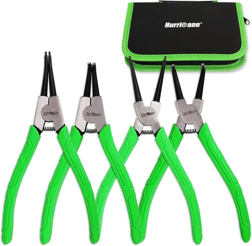 Construcción premium: hecho de acero Cr-v endurecido con un acabado negro totalmente pulido, recubierto electroforético, que los hace extremadamente duraderos y duraderos El paquete incluye: punta doblada externa de 7 pulgadas; broche externo de 7 pulgadas; punta doblada interna de 7 pulgadas; punta recta interna de 7 pulgadas y bolsa de almacenamiento compacta Fácil de usar: Asas con resorte de apertura automática con asas de PVC para un uso cómodo durante mucho tiempo Múltiples aplicaciones: ideal para quitar e instalar anillos de retención colocados externamente; también proporciona potencia de sujeción instantánea y es fácil de reposicionar durante el montaje; fijación y trabajo de pegado Cómodo transporte: viene con una bolsa con cremallera para un almacenamiento conveniente; protección y transporte