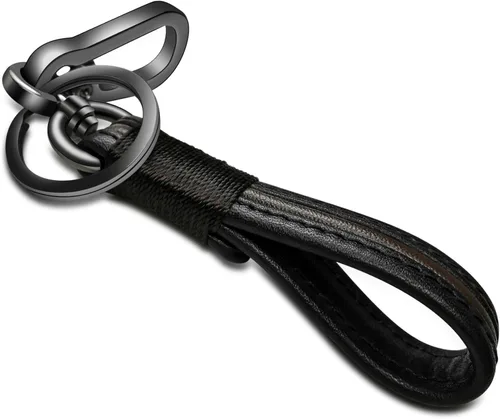 Aleación de zinc mejorada y material de cuero: El llavero de cuero está hecho de aleación de zinc que es una construcción sólida y cuero, que es uno de los materiales de actualización. Diseño elegante: este llavero de cuero adopta la idea de combinar, elegante llavero hecho a mano, puede unir la llave de su automóvil y la llave de casa normal, uso duradero. Extremadamente resistente: Uno de los llaveros de cuero más duraderos (Longitud: 5.25 pulgadas, Longitud de la parte de piel: 3 pulgadas, 1.10 oz). Fácil de operar: llavero elástico compuesto y anillo de cuero, conveniente para usar y llevar, permitiendo múltiples dispositivos simultáneos para llaves de casa y llave de coche. Lo que obtienes: llavero de aleación de zinc, viene con caja de regalo, excelente idea de regalo, nuestro mango de preocupación de 18 meses y servicio al cliente amigable. Llavero duradero y elegante.