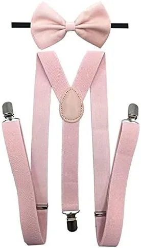Impresionantes accesorios de boda rosa claro pajarita ajustable y tirantes, verde azulado