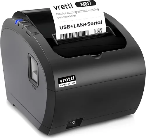 【Velocidad de impresión ultrarrápida de 260 mm/s】 La impresora de recibos térmica VRETTI M817 ofrece una impresión ultrarrápida a 260 mm/s, un 20% más rápida que los modelos estándar de 240 mm/s, perfecta para entornos de alto volumen como restaurantes, tiendas minoristas y hospitales. Disfruta de recibos nítidos y sin manchas de 203 DPI sin tinta, tóner ni cintas, reduciendo los costos operativos. Triple conectividad: USB, serie y Ethernet: equipada con puertos USB, serie (RS-232) y Ethernet, esta impresora POS garantiza una integración perfecta con múltiples sistemas. Admite Windows (XP/7/8/10/11), MacOS, Linux (CUPS), JavaPOS y OPOS, por lo que es ideal para diversas configuraciones empresariales. (Nota: Sin WiFi/Bluetooth, no compatible con Square, Clover o Ubereats.) 【Impresión económica y ecológica】Incluye 1 rollo de papel térmico de 80mmx30mm para comenzar inmediatamente. A diferencia de las impresoras basadas en tinta, la tecnología térmica de VRETTI elimina los costos de tinta y reduce el desperdicio. Eficiencia energética con bajo consumo de energía, ideal para operaciones 24/7. Diseño para colgar en la pared: la impresora de recibos VRETTI soporta montaje en pared. Impresora de cocina con dos agujeros para colgar en la parte inferior. Fácil mantenimiento. Ideal para centros comerciales, supermercados, cocina, restaurante, venta al por menor, hoteles, comedores, etc. 【Un conjunto de kit de impresora de recibos】El kit de impresora de recibos térmica VRETTI contiene impresora de recibos térmica*1, U Disk*1, Adaptador*1, Cable de alimentación*1, Manual del usuario*1, Papel de prueba*1. Fácilmente utilizable para principiantes