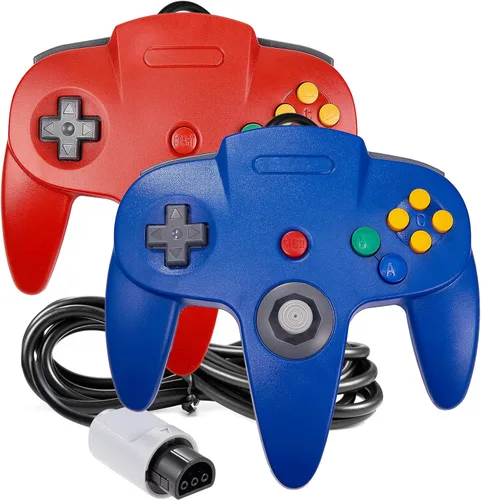 iNNEXT - Paquete de 2 mandos de 64 controladores mando con cable palo analógico 3D para 64 Plug Play no versión USB de PC rojoazul