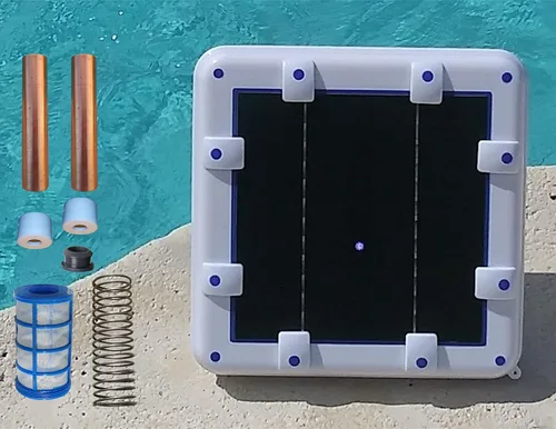 RENDIMIENTO DE 4 UNIDADES: 14,0 VOLTS - 6,5 WATTS: Cada unidad modelo Daytona es igual a tener cuatro unidades redondas de 7,0 voltios (98% de ionizadores solares vendidos en Amazon), y un 45% más de potencia de ionización que la unidad Floatron. Eficacia del ionizador solar dependiente del voltaje y la corriente del panel solar. Cuanto mayor sea el voltaje mayor la ionización. Mayor potencia mayor es el ahorro. Cada unidad efectiva de 500 a 45,000 galones. No más adivinaciones: la unidad LED muestra si la unidad está encendida y funcionando, bajo nivel de cloro, mantenimiento necesario, etc. Piezas de repuesto disponibles en el sitio web de Hilltop Solar Sin mantenimiento con ánodo autolimpiante: el ánodo autolimpiante sin mantenimiento reduce el mantenimiento de la unidad en un 90% y extiende la vida útil del ánodo en un 98% sobre los productos de la competencia. El diseño único sin tornillos de ala permite que el ánodo se utilice hasta un 95%, ahorra dinero en reemplazos de ánodo y elimina la cesta que se despega de la unidad. Calidad resistente: construcción resistente con cerraduras de panel solar mecánicas reforzadas que proporcionan una fuerte adherencia para evitar que el panel solar se desprenda. Unidades componentes internos sellados en compartimentos herméticos para durabilidad y humedad internamente no afecta el rendimiento de las unidades. Ahorra dinero y tiempo: los ionizadores Hilltop Solar están diseñados en Estados Unidos para maximizar la ionización, minimizar el uso de cloro, aclarar el agua, reducir la dureza del agua y reducir los fosfatos. Los ionizadores Hilltop Solar ahorran tiempo, dinero y esfuerzo con el mantenimiento de la piscina al transformar su piscina para usar energía solar.