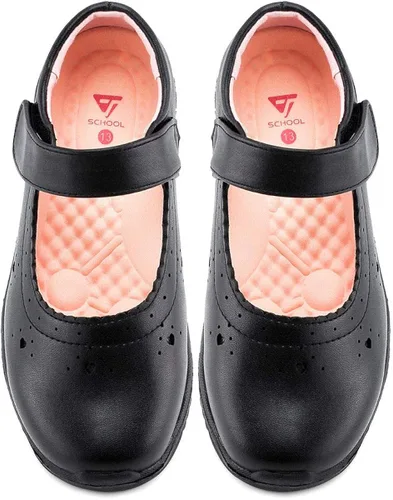 Suela de Goma Zapatos clásicos y ligeros de uniforme Mary Jane para niñas. El cierre de velcro ajustable está diseñado para un ajuste flexible. Plantilla agradable al tacto con espuma de yoga suave para un mejor apoyo y comodidad. Suela ligera de EVA ligera y flexible. Ocasiones: zapatos negros ligeros que se adaptan a múltiples ocasiones, como días escolares de niñas, fiestas, conciertos, bodas, actuaciones, juegos, etc.