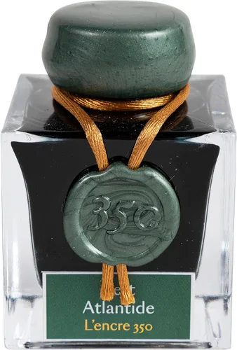 Esta hermosa botella de vidrio de 1.7 fl oz cuenta con el color conmemorativo Vert Atlantide, es un verde oscuro que cuenta con delicadas manchas de pigmento plateado y dorado, creando un brillo lujoso y una sutil variación de tono mientras escribe. Un homenaje al fundador de la marca Jacques Herbin, un preciado navegante que amaba el Continente de la Atlántida.